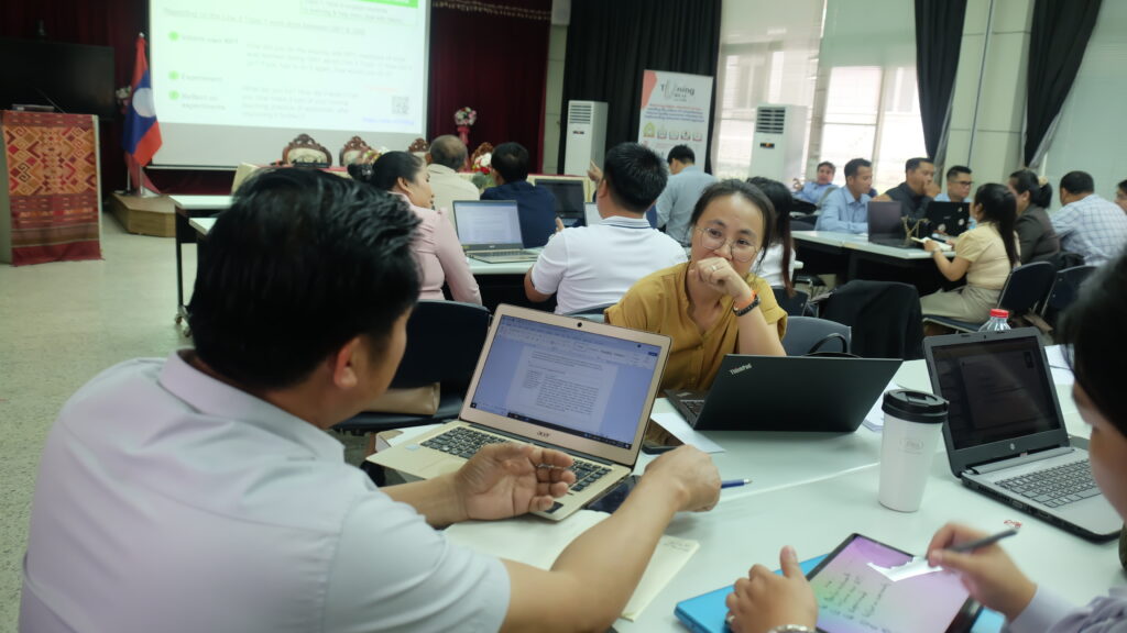 REAL programme team members – Thavone Panmanivong (SU), Bamphen Keomounkhoun (CU), Soubanh Oudonemixay (SKU), and Hongkham Vongxay (NUOL) – presented the project, while National REAL Task Force members – Assoc. Prof. Dr. Khoune Sackbouavong  (SKU), Dr. Nouphone Manivanh (SU), Mr. Amkheng Phenglasy (NUOL), Dr. Viengdavong Luangsithideth (MOES) and Dr. Khamkeo Hasana (MOES) – facilitated the two discussion sessions and collected inputs that will help in the follow-up work of the project.