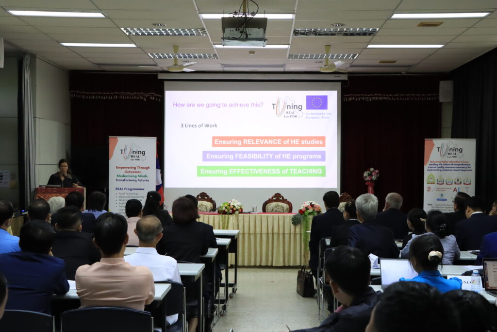 as well as the highest educational authorities of the four Lao public universities – NUOL, CU, SKU and SU (see below) – had their own of working sessions on Day 2 (full day) and Day 3 (morning), and joined the REAL Programme Teams during the Closing Plenary to hear about the progress achieved in the three project working lines: Ensuring Relevance of Higher Education Studies (Line 1), Ensuring Feasibility of Higher Education Programmes (Line 2) and Ensuring Effectiveness of Teaching (Line 3).